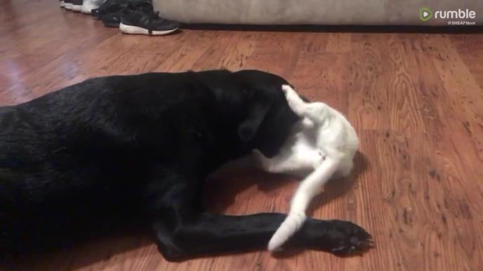 KO KAŽE DA SE NE SLAŽU? Pogledajte kako mačka i pas uživaju u igri, a tek šta mu ona radi šapicom po njušci (VIDEO)