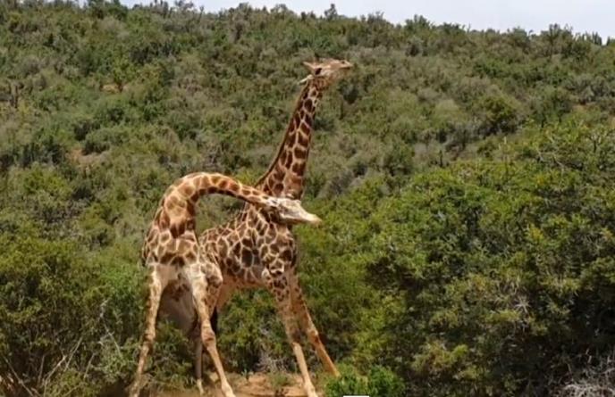 U blizini grada Port Elizabet u Južnoafričkoj republici, turisti su snimili neobičan prizor, nešto što se ne viđa svaki dan - tuču žirafa.