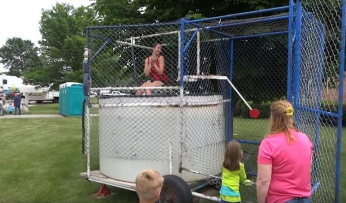 Devojčica je prvo gađala loptama osigurač kako bi oslobodila ženu iz kaveza, bila je baš uporna u tome, ali joj nikako nije pošlo za rukom da pogodi pravo mesto.