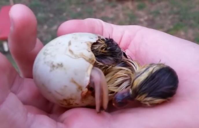 Ova preslatka patkica izgleda nije oduševljena Zemljom. U trenutku kada je jaje puklo i kada treba da izađe iz njega i započne novi život, ona se sklupčala i spava kao top.