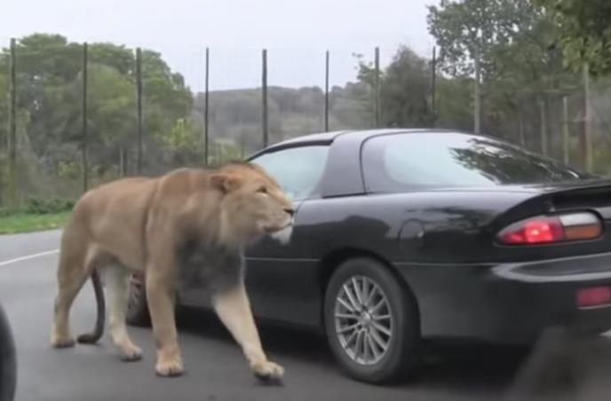 Čovek nije mrdnuo, auto je i dalje radio, ali stajao je u mestu, dok je lav obilazio oko automobila i čudno ga zagledao.