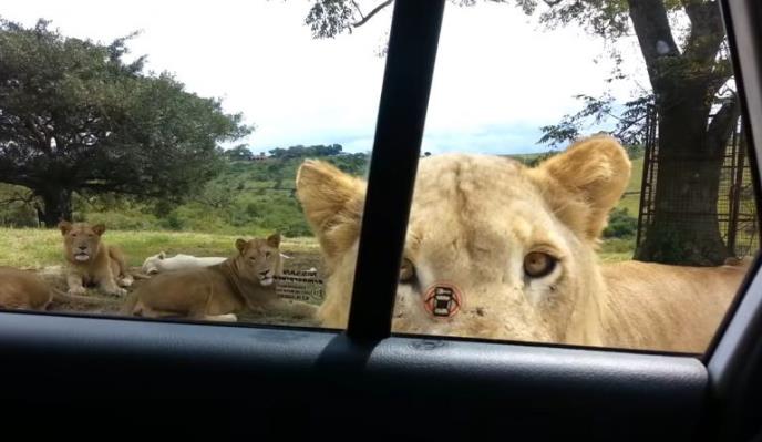 Sve je bilo idilično, lavovi su ležali, gledali ih, čak su i pozirali, a onda je jedan lav prišao do samog automobila.