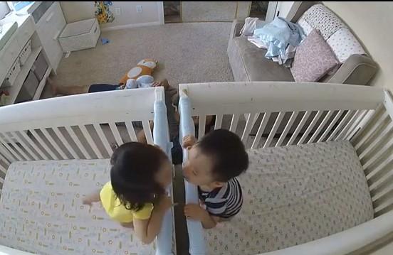Ove dve maze baš ne mogu jedno bez drugog. Brat i sestra stavljeni su u svoje krevetiće jer je vreme za dnevnu dremku, ali pre toga - rituali se moraju ispoštovati. Na spavanje se ne ide bez poljubca za lepe snove.