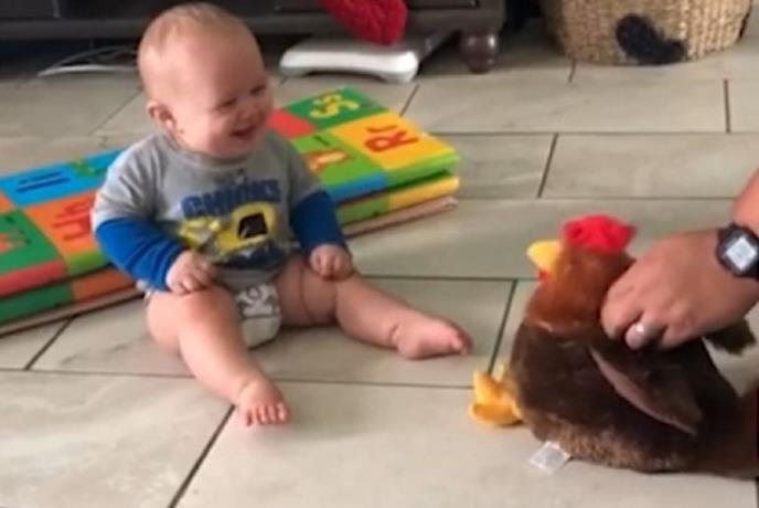 Maloj deci treba zaista malo pa da se rasvesele. Omiljena igračka, plišana koka, uz pomoć koje je tata napravio skromnu pozorišnu predstavu toliko je zasmejala ovu bebu da ona nikako nije uspevala da se zaustavi.