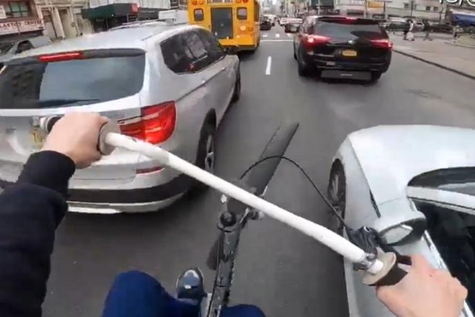 Ipak, ovaj biciklista je demonstrirao kako se može provući i u najgušćem špicu u Njujorku. On je vozeći bicikl, i to samo na jednom točku, uspevao lagano da prođe između kolona vozila i da se pritom dobro zabavi.