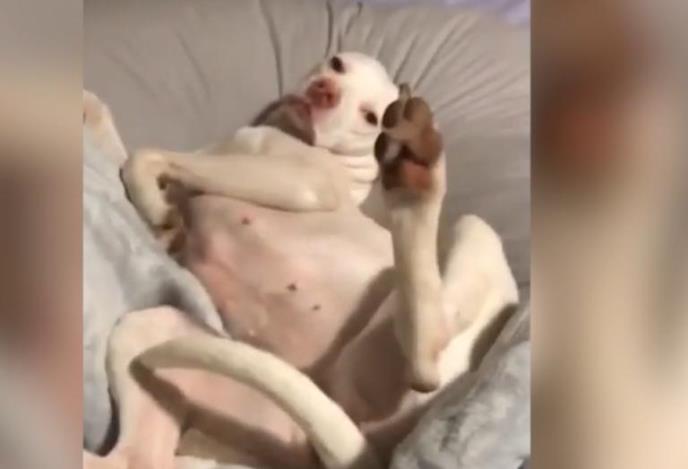 Vlasnica doge nabavila je jastuk za trudnici koji olakšava trudničke dane i noći kada telo žene prolazi kroz velike promene i bolove. Međutim, ona ga je kratko koristila jer je Hazel Rej prisvojila jastuk, legla i ne pomera se. Ova scena bila je toliko smešna da je žena uzela telefon i snimila svog ludog psa.