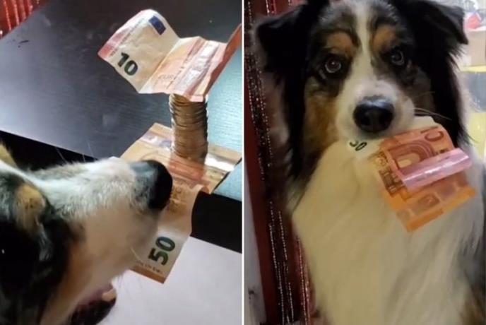 Na snimku se vidi kako Raš vešto izvlači novčanice od pet, od deset i na kraju od 50 evra koje su bile između kovanica, a da pritom nijednu nije oborio. Mislite da je slučajnost? Njegov gazda je ponovio situaciju, drugačije rasporedio novčanice, a kucov je bez problema opet sve izvukao, a da nijedan evro u sitnim apoenima nije srušio.