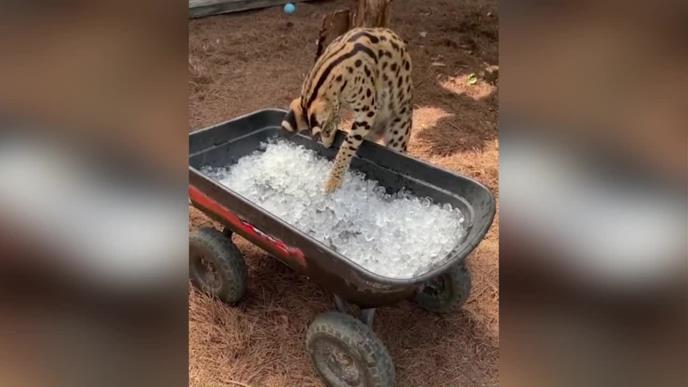 Divljim životinjama neke situacije izgledaju potpuno strano. Nešto šta je normalno nama ljudima za njih je strašno, tim pre što su po prirodi obazrive i jako sumnjičave. Ovaj serval je prvi put video kockice leda na gomili i evo šta je uradio.