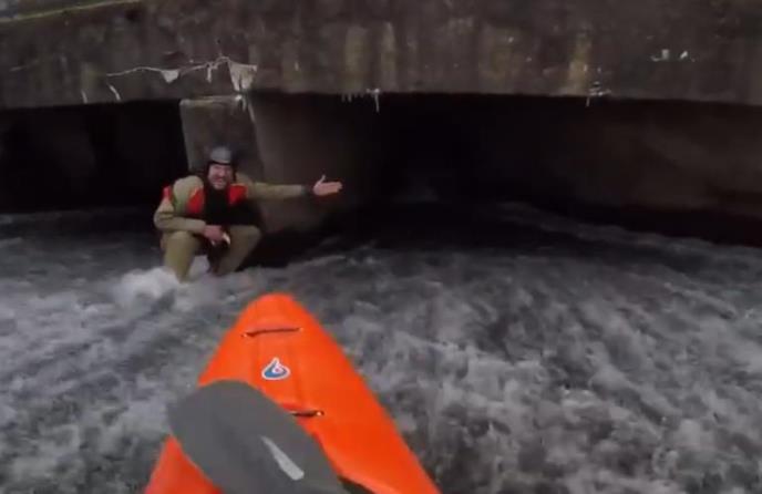 Vozač kajaka dobro je usmerio čamac i uspešno ušao u usku odvodnu cev. Prošao je kroz tunel nalik onom u akvaparkovima, i izašao na drugu stranu reke. Snimak je stavljen na internet a ljudi su počeli da komentarišu: -Da li je loše smrdelo?