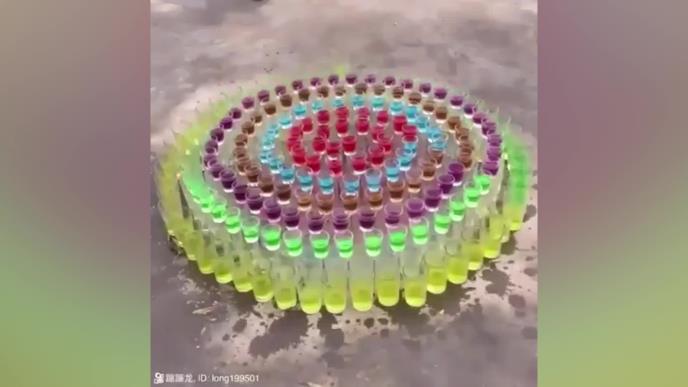 Retki su ljudi koji se kao deca nisu igrali dominama i bili posebno oduševljeni kada na jedan dodir poruše domine poređane ukrug ili neku kulu od karata. Međutim ovaj čovek je smislio nešto originalno. Poređao je čaše, napunio ih vodom i na jedan dodir ih porušio, a da se ni jedna nije polomila. Pravi domino efekat, nema šta.