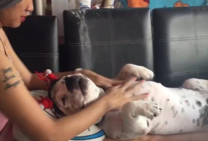 Njegova vlasnica iz Tajlalndske provincije Račaburi kaže da je ovo jedan razmaženi pas koji svakodnevno traži masažu, legne na leđa, opusti se i čeka da ga usluže.