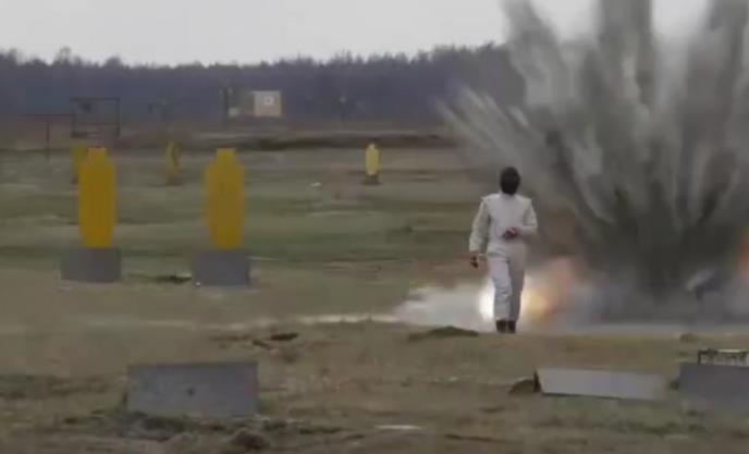 Na ovom snimku vidimo devojku koja obučena u posebno odelo prolazi kroz minsko polje, odnosno teren namenjen testiranju otpora na eksplozije. Ona se na snimku šeta kroz niz eksplozivnih naprava, koje bi je trebalo ubili, ili bar ozlediti. Odelo koje je nosila na sebi pružilo joj je termičku izolaciju stoga nije bilo potrebe za bežanjem, ali se vidi da ona izbegava direktan prelazak preko bombi! Pogledajte video: