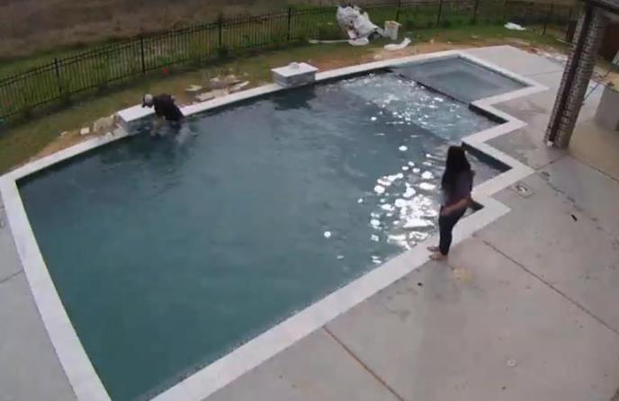 Dva francuska buldoga šetala su i igrala se oko bazena sa svojim vlasnicima. U jednom trenutku, štene je poželelo da dotrči do svoje mame, voda u bazenu mu je izgledala kao ravna ploča i mislio je da može da pretrči preko nje. Upao je direktno u bazen, i nestao pod vodom. Vlasnik je odmah skočio za njim i izvukao ga, dok je njegova mama uznemirena čekala na ivici bazena.