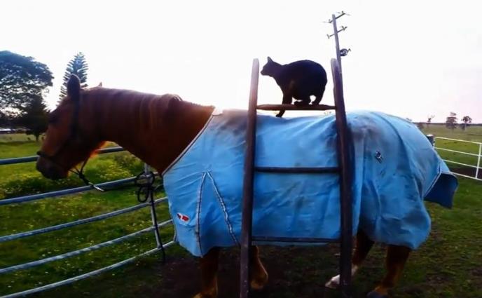 Mačka i konj sa snimka najbolji su prijatelji i uživaju provodeći vreme zajedno. Poslednje dve godine oni se intenzivno druže, a svakodnevno se mačka vozi na leđima svog prijatelja konja. Njihova vlasnica poseduje još dosta mezimaca, ali niko se ne slaže kao njih dvoje. Pogledajte video: