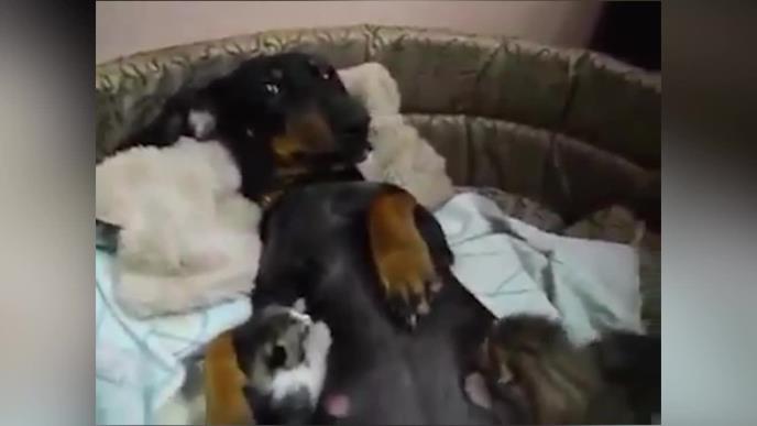 ČUDO NEVIĐENO! Keruša prihvatila mačiće kao svoje bebe, leže joj na stomaku i sisaju je, a nije im prava majka (VIDEO)