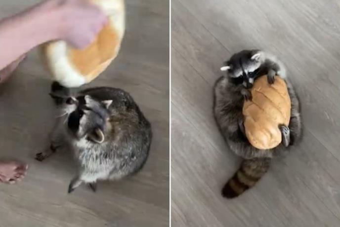 Ako ne možete sami da ponesete dovoljno vekni hleba, možda je pravi trenutak da svoj ljubimca dresirate da vam pomogne. Šalimo se, naravno, ali ovaj rakun je toliko utreniran da hvata veknu da bi komotno mogli da ga šalju u prodavnicu.