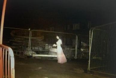 Naime, kamera koja ima senzor za pokret, "upalila se" u 1.53 ujutro i snimila "providnu" ženu u belom koja drži nešto u rukama i kreće se s kraja na kraj gradilišta.