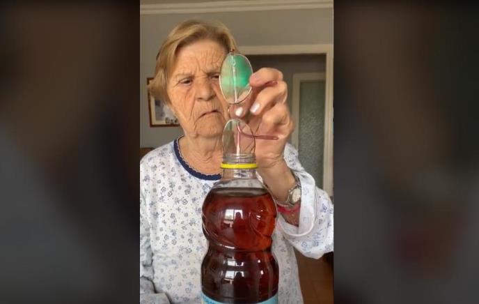 Naime, u jednom videu baka Rosa skida naočare i pokušava da ih ugura u flašu u kojoj je sok. Naravno, naočare ne mogu da prođu kroz grlić, ali onda ona stavlja ruku ispred flaše da bi izvela svoj "trik"... Rezultat je urnebesan!