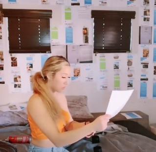 Devojka je sakupila sve što je mogla sa snimkom koji je prikazuje kako štampa papire i sprema se da ih zalepi kao tapete u sobi. Naglasila je da su "nove, prelepe tapete".
