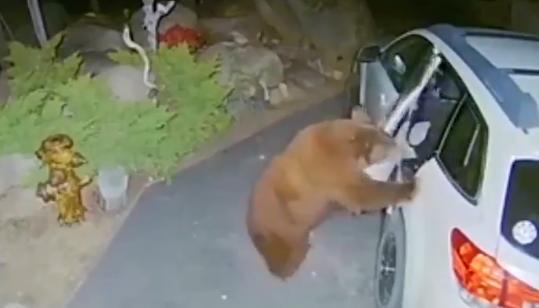 Pospani medved je spretno otvorio vrata automobila koji je bio parkiran na prilazu kuće u blizini šume u Saut Lejk Tahou, Kalifornija i zaspao unutra.