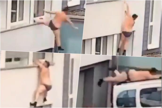 Na društvenim mrežama kruži snimak kako švaler beži kroz prozor i pada na automobil koji je parkiran ispred zgrade.
