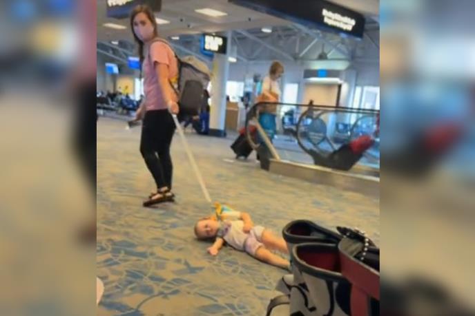 VUKLA SINA NA POVOCU PO PODU: Žena napravila HAOS na aerodromu, pa IZNERVIRALA ceo svet svojim rešenjem za problem sa detetom!