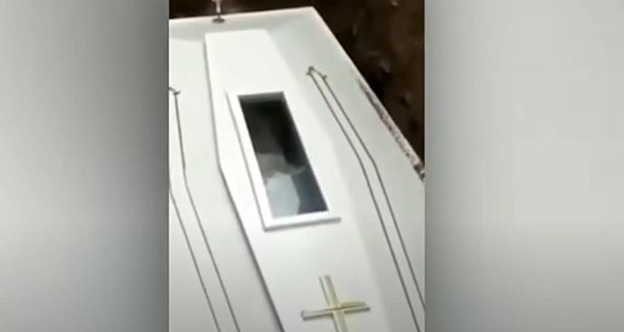Jeziva scena snimljena je na jednom pogrebu u Indoneziji gde je osoba koja je preminula mahnula iz kovčega kroz ''stakleni prozor''. Ili je barem tako izgledalo.