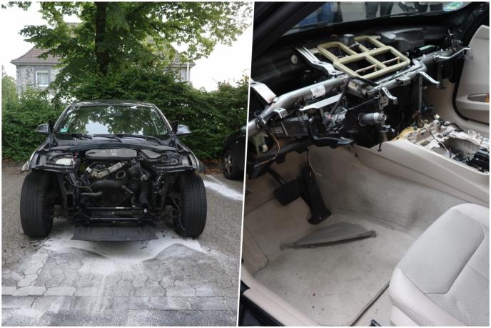 Njegova Serija 3 bila je potpuno „gola“, uključujući ceo prednji deo i kontrolnu tablu, sa procenjenom štetom od oko 20.000 evra. Incident se dogodio u okrugu Lindenplatz u Hildenu u Nemačkoj prošlog vikenda.