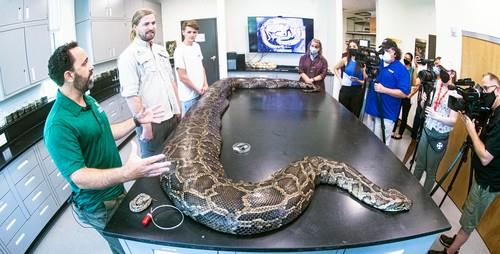 Zmiju od 5,5 metara i gotovo sto kila uhvatili su još u decembru prošle godine u Everglejdsu, ali držali su je u zamrzivaču do aprila. Oni su potom objavili fotografje i detalje o najvećem ulovu s kojim su se borili 20 minuta.