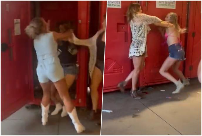 Na početku snimka vidi se njihova verbalna rasprava, da bi nakon nekoliko razmenjenih reči nastao potpuni haos. Njih dve su se toliko gurale da su upale u jednu od kabina iz koje je izletela unezverena devojka koja je već bila unutra.