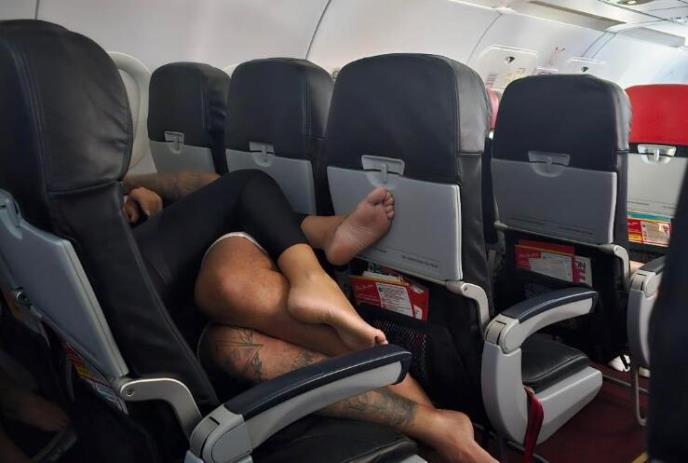 Na fotografijama se vide njih dvoje kako bosih nogu leže jedno preko drugog na sedištu i ljube se, a sve to za vreme leta.