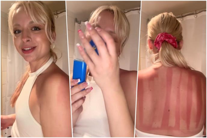 Naime, kako je navela, koristila je kremu za zaštitu od sunca, ali je nije ravnomerno nanela po leđima što se završilo opekotinama u obliku traka.