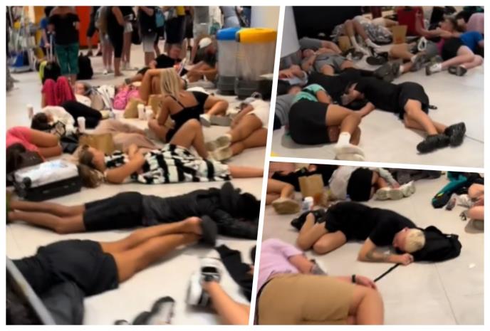 "Stanje na aerodromu na Ibici je kao da prolazite kroz bojno polje", napisao je di-džej Džon Samit uz snimak koji prikazuje stotine turista kako leže i spavaju na podu aerodroma, nesvesni bilo čega oko sebe.