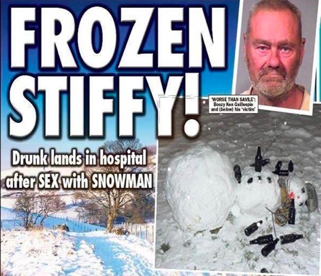 Kenet je očigledno, potpuno pijan, želeo da iskoristi rupu u velikoj snežnoj skulpturi, a o posledicama nije ni mislio. Povrede koje je zadobio su vrlo ozbiljne.