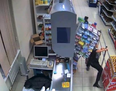 Naime, on je odlučio je da prekoči lanac koji odvaja kasu od ostatka radnje, međutim jedna noga je zakačila lanac i on se sapleo, a onda je na njega pao ceo raf.