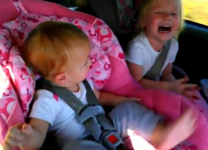 Naime, kada roditelji ove preslatke bebe puste pozati hit "Gangnam stajl“ ona se budi i počinje da skakuće, dok starija sestra, koja sedi pored nje, ne može da obuzda smeh.