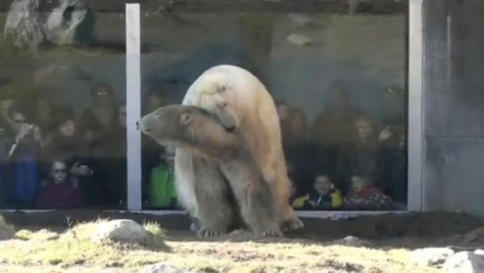 Da je proleće na pragu, vidi se po dva polarna medveda u roterdamskom zoo vrtu koji su stupili u ljubavni čin naočigled znatiželjnih posetilaca