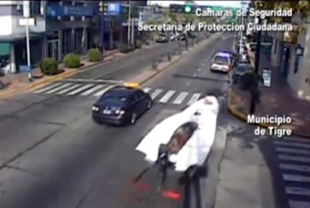 ARGENTINA - Samo pukom srećom, u Argentini, je izbegnuta bizarna nesreća u kojoj je gliser zamalo udario pešaka na ulici.