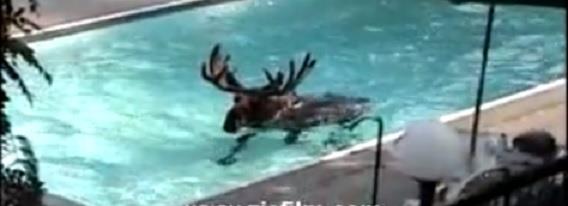 VAŠINGTON - Stanari jedne vile bili su i više nego iznenađeni kada su u svom bazenu ugledali ogromnog losa koji je rešio da se malo reklaksira u vodi.