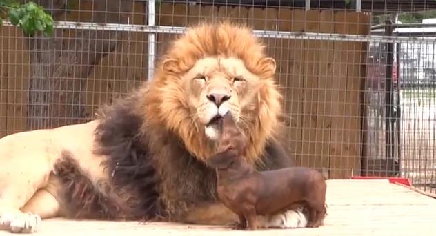 Iako bi mnogi pomislili da bi se ovakvo drugarstvo moglo završiti kobno po malenog psa, snimak svedoči nešto sasvim drugačije. Jazavičar je pomogao lavu da očisti zube, i još ga i poljubio par puta.