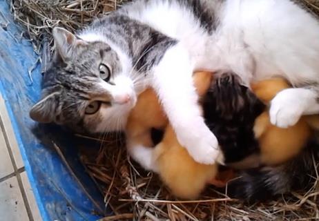 ČUDNA PORODICA: Mačka prisvojila pačiće
