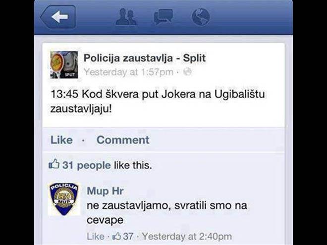 Neko je jedan od tih "slučajeva" objavio na Internetu. Navodno je neko javio da policija zaustavlja na jednoj lokaciji u Splitu, ali se oglasio i MUP Hrvatske sa porukom: “Ne zaustavljamo, svratili smo na ćevape."