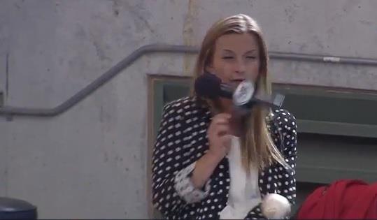 Naime, ona je izveštavala sa bejbzol utakmice kada je u jednom momentu pogodila loptica. Mikrofon joj je ispao iz ruku, ali ga je ona samo podigla i nastavila da izveštava.