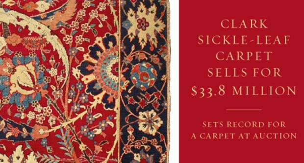 Aukcijska kuća Sodbi saopštila je da je cena plaćena za tepih trostruko viša od prethodnog aukcijskog rekorda za tepih.
