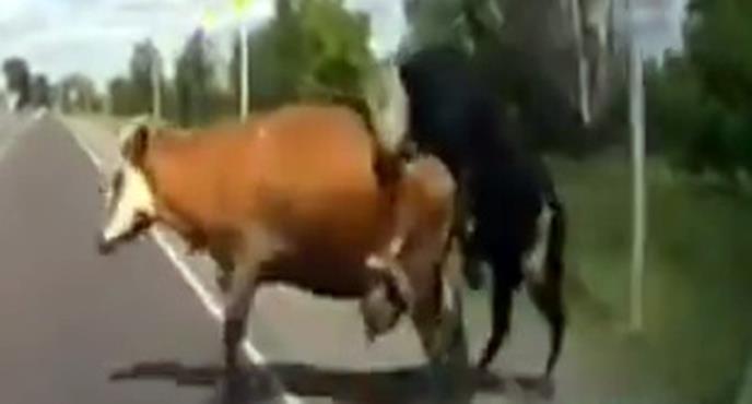 Da vozači moraju da budu sve vreme na oprezu i da bukvalno treba da otvore četvoro očiju, pokazuje i ovaj snimak na kome se vidi kako je vozač naleteo i udar u kravu i bika tokom parenja.