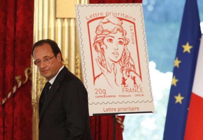 Oland je u nedelju predstavio novu markicu sa likom koji bi trebalo da predstavlja Marijanu, simbol Francuske od revolucije.
