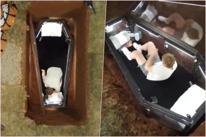 Jedan momak po imenu Mak se prijavio, a kamere su zabeležile čitav proces, počev od ulaska u stakleni kovčeg, preko zatrpavanja, a potom i njegovu strategiju da prevaziđe klaustrofobiju. Momak je nosio i pametni sat koji je pratio njegove otkucaje srca, ali na kom nije imao vreme, jer je uslov bio da ne zna koliko je vremena prošlo otkako je zakopan.