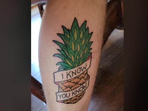 Muškarac sa "Reddit"-a odlučio se za tetovažu ananasa na listu noge, uz citat iz serije "I know you know" (prevedeno: "Znam da znaš"). Ali, ono što nije znao jeste da je naopako okrenuti ananas globalni simbol svingera – ljudi koji praktikuju otvorene veze. Prema urbanim legendama, ananas ispred nečije kuće signalizira da se unutra održava zabava svingera. Shvativši potencijalno neugodno značenje svoje tetovaže, muškarac je odlučio da potraži savete o mogućim prepravkama.