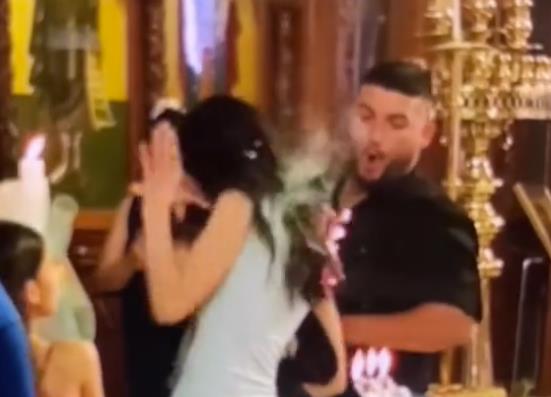 Snimak nezgode, koji je zabeležen u trenutku dok je devojka držala kumče ispred oltara , već ima preko 1,6 miliona pregleda, a sve se dogodilo uz pesmu "Káps'te ta óla" ("Spalite sve") koja je naknadno dodata u montaži videa.