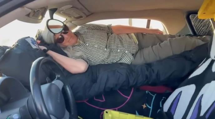 Kaja nije dodavala nikakve kamperske dodatke vozilu. Već 14 meseci spava na dva vazdušna dušeka, razvučena preko suvozačevog sedišta. Pošto je automobil izuzetno kratak, njena glava je praktično naslonjena na šoferšajbnu dok spava.